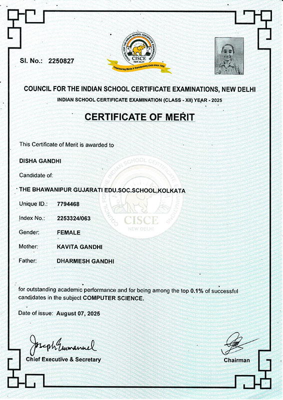 The Bhawanipur Gujarati Education Society School (ISC)